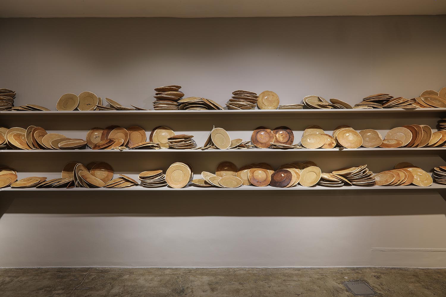 Installation of 700 plates wooden shelves, bread dough, variation of 1000-1699 Photo credit: Mohsen Gallery
