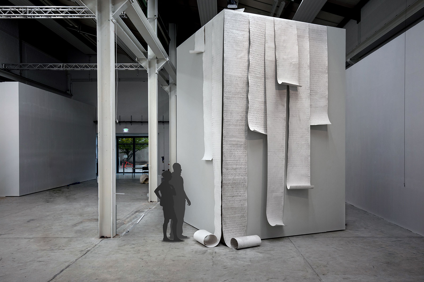 "In meiner Arbeit ist der Prozess von besonderer Bedeutung. Die Entstehungsgeschichte einer Installation ist Teil des Werks. Mein Atelier erstreckt sich über die Wüsten um Teheran, einen Salzsee, eine kleine Brotfabrik und Gefängnisse. Ausgangspunkt jeder Installation ist die Beobachtung. Der nächste Schritt ist das Schreiben, das für mich die Lücke zwischen dem Sehen und dem Enthüllen der Dinge füllt. Es bietet die Möglichkeit, Phänomenen, die weit entfernt von dem sind, was andere sehen können, neu zu definieren. Das Schreiben ist mein erster Schritt bei der Verfremdung von Phänomenen. Es ist der erste Schritt, um zu zeigen, "was ich sehe." Meistens ist das Niederschreiben eines Satzes oder einer Notiz die erste Stufe der Entstehung eines Kunstwerks. Erst danach nimmt es eine physische und greifbare Form an, die erlebt werden kann. Ich versuche, diesen Anfangssatz in eine Atmosphäre zu verwandeln, in die man eintreten oder eintauchen kann."
