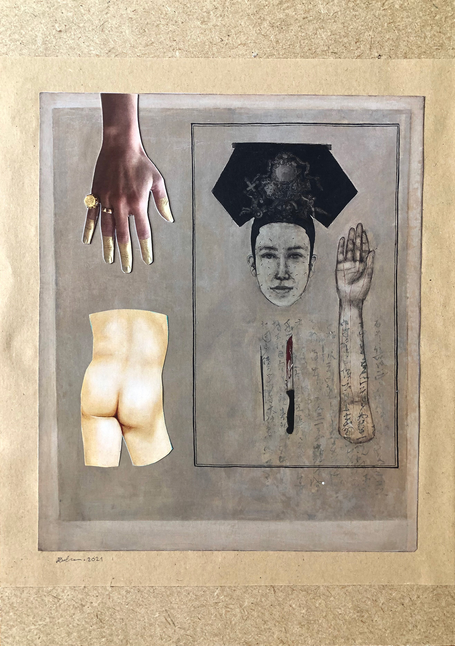 “I started out as a painter. Over the last decade, I have been working on mixed media installations, calligraphy, video, and photography focusing on exploring different artistic mediums and materials. The themes I have worked on explore socio-political topics, such as Islamophobia, displacement, alienation, and patriarchy. More recently, I had been engaged in collaborations with other people, consciously using feminism as practice”.